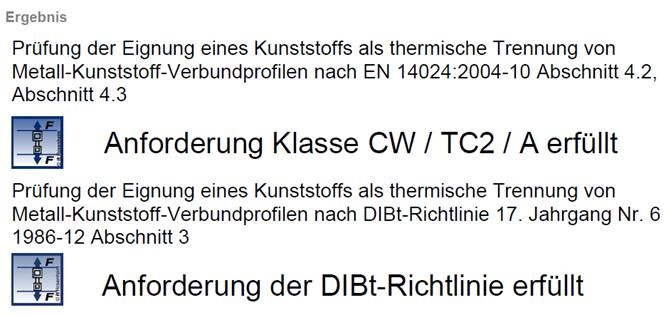Unsere thermischen Trennungen wurden durch das Institut für Fenstertechnik Rosenheim (ift) zertifiziert. Sie erfüllen somit die Anforderungen der Klasse CW / TC2 / A sowie der DIBt-Richtlinie.